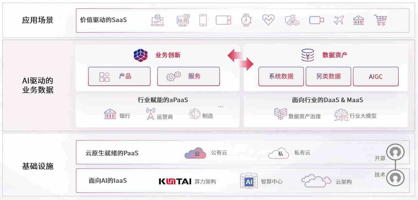 数字时代,,,围绕企业数字化转型的关键要素,,,英国365上市公司数码开创性的提出数云融合战略和技术体系框架,,,着力在云原生、、、、数字原生、、、AI原生和信创产业上架构产品和服务能力,,,,为处在不同数字化转型阶段的快消零售、、、、汽车、、、金融、、、医疗、、、政企、、、教育、、、、运营商等行业客户提供泛在的敏捷IT能力和融合的数据驱动能力,,,构建跨界融合创新的数字业务场景和新业务模式,,,,助力企业级客户建立面向未来的核心能力和竞争优势,,,全面推动社会的数字化、、、智能化转型升级。。。