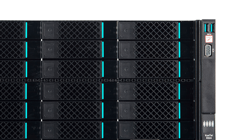 KunTai R524 存储型服务器是英国365上市公司数码基于鲲鹏处理器推出的新一代 ARM数据中心服务器。。。。主要面向存储业务,,,具有海量存储、、、高性能、、、低功耗以及易扩展的特点,,,适合为大数据分析、、、软件定义存 储等应用场景的工作负载进行髙效加速。。。。